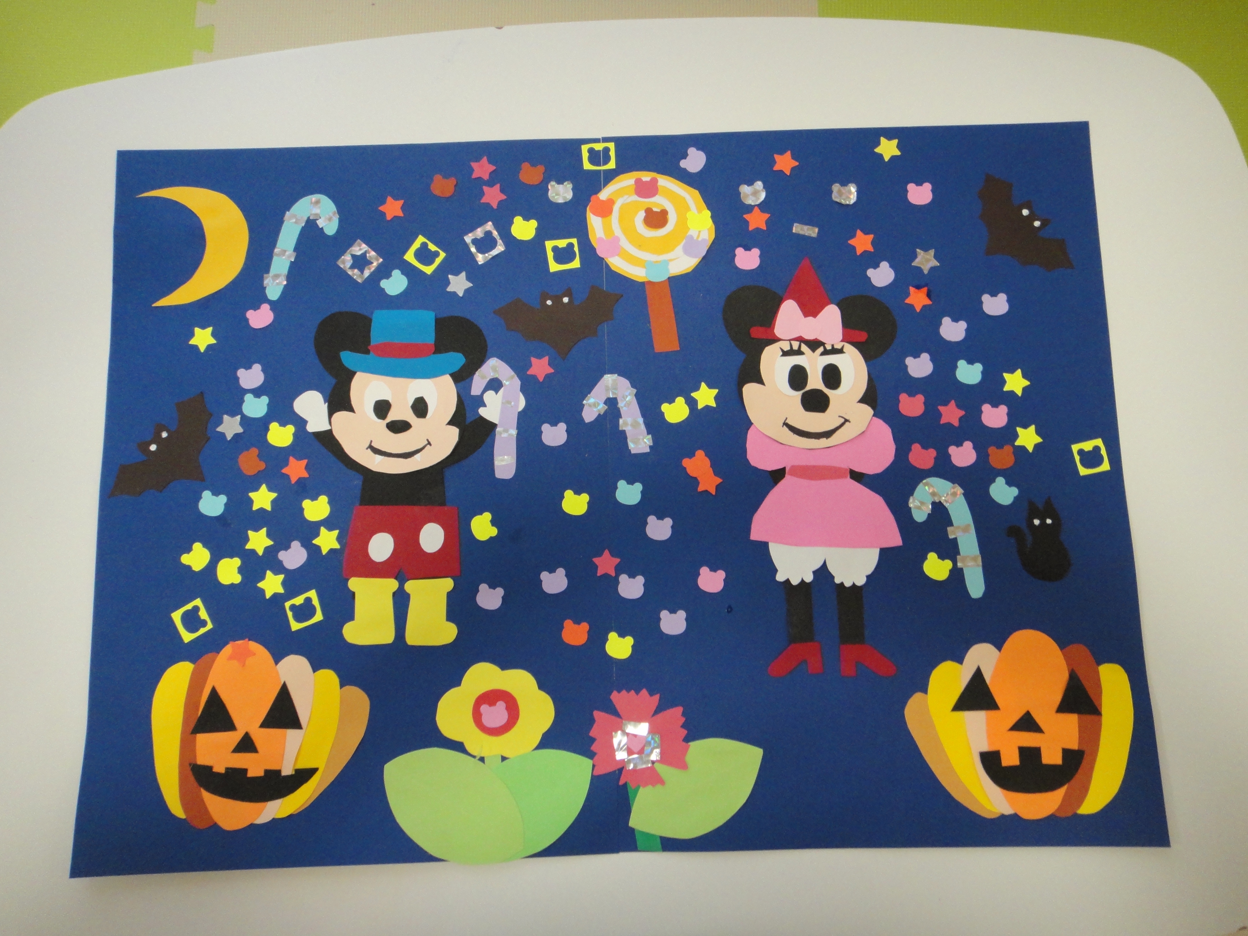 壁面を作りました😃画用紙を型抜きして貼りつけ、とても可愛い壁面が出来上がりました☺