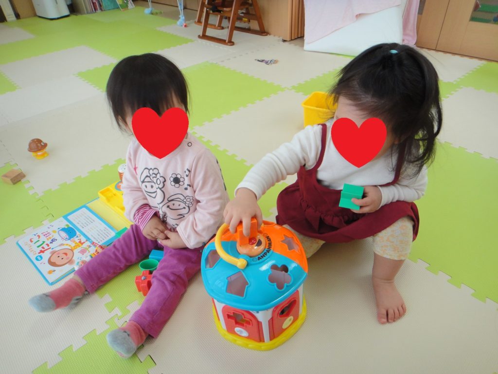 2枚目の写真は、一緒に型はめパズルをするNちゃんとMちゃん♪