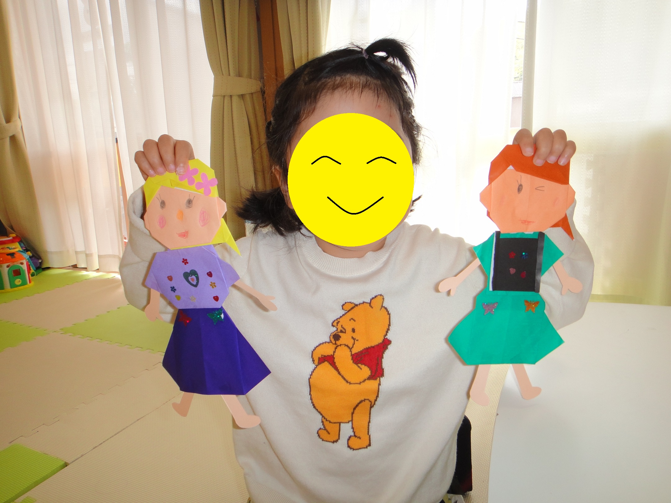 治るのに日にちを要する病気の場合、回復傾向での利用が多いので 製作をしたりして過ごしています。折り紙や、割りばし鉄砲など年齢や好みに合わせて楽しく過ごせるようにしています(*^^*)