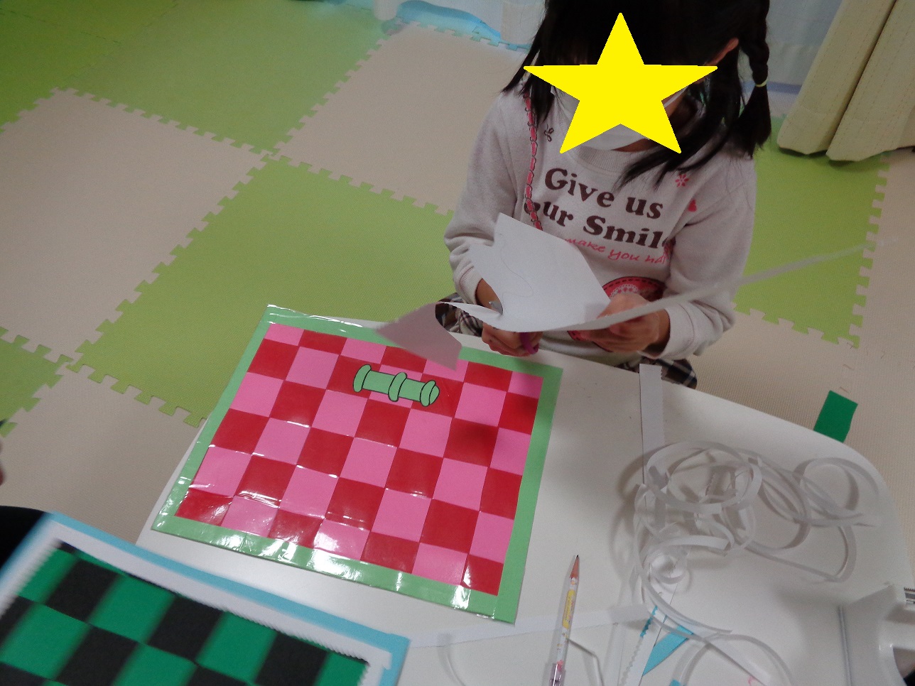 症状も落ち着いてきたので、大好きな製作をたくさんしました。アナと雪の女王のぬりえパズル・鬼滅の刃風のランチョンマットなどをスタッフと作り大喜びでした。