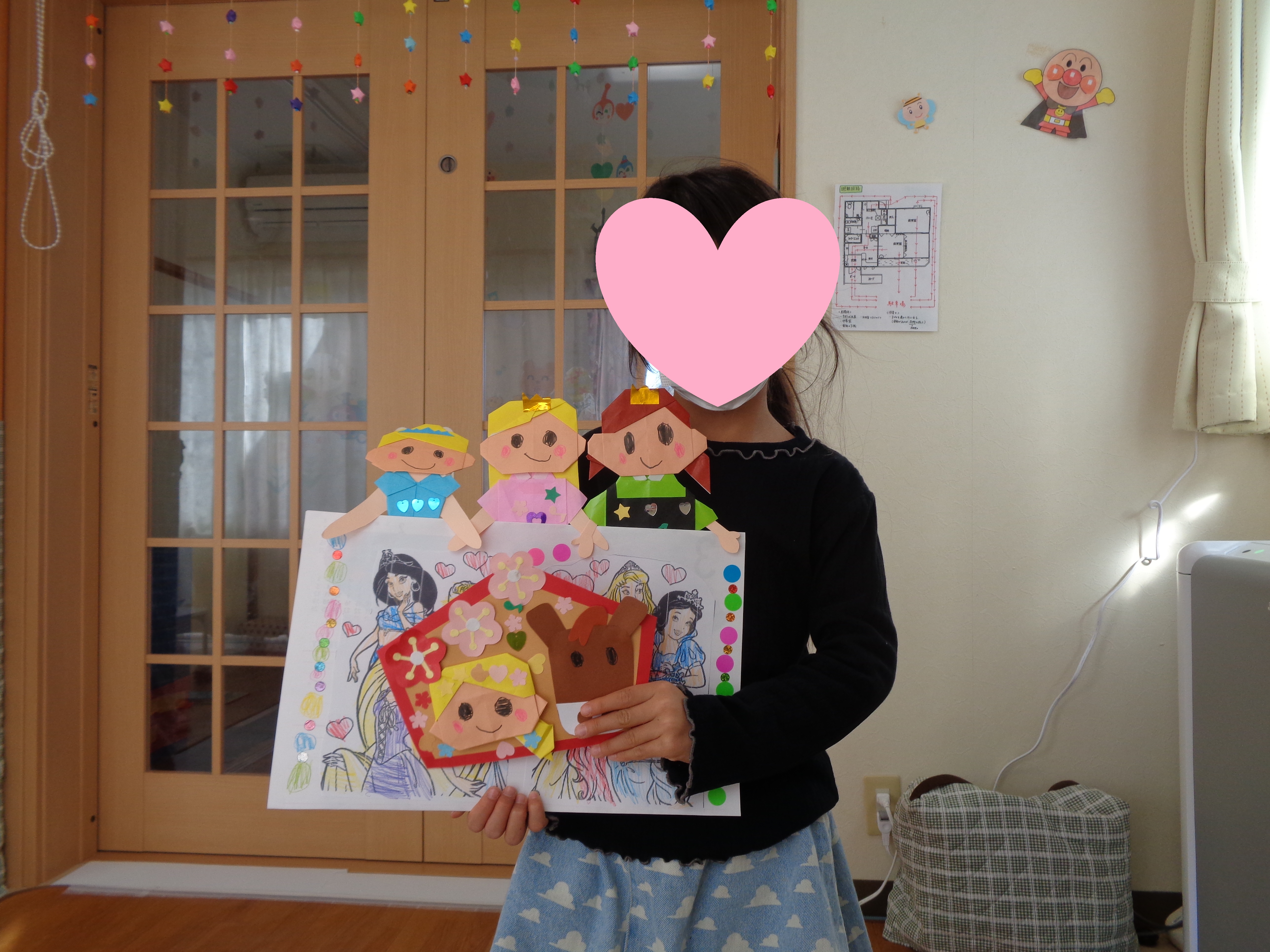 プリンセスが大好きなAちゃん。干支の午とプリンセスで絵馬を作りました。「もっとプリンセスを作りたい!(^^)!」ということで…人形に顔を描いて、ドレスをシールやマジックで可愛く飾り付けしました(*^-^*)カラフルでキラキラの持ち帰りバックも作って、とても満足そうでした( *´艸`)